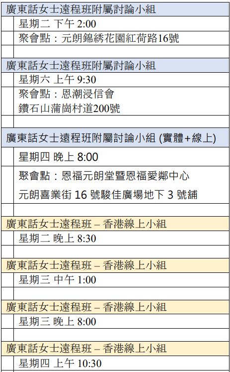 This is not an official site of Bible Study Fellowship. The purpose of this site is to share general class information in Hong Kong. For more information about BSF, please visit the official site.
